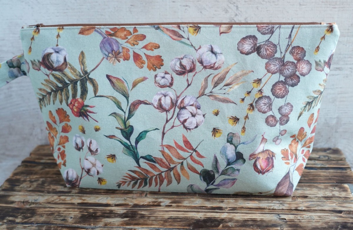 Kuivatut kukat- kuosi , puuvillapolyesterisekoitekankaasta (80% puuvilllaa, 20% kierrätyspolyesteriä) vaaleanruskea puuvillavuori